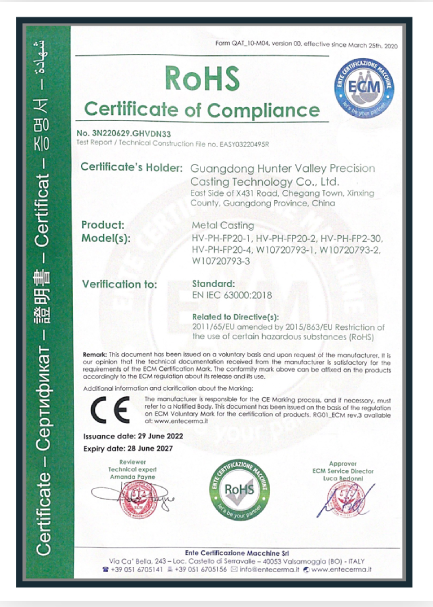 Guangdong Hunter Valley Precision Casting Technology Co.,Ltd.
